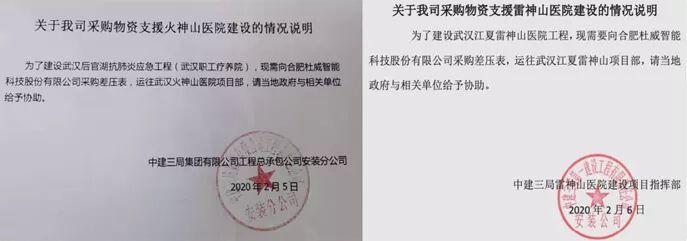 日前,位于高新区的合肥杜威智能科技股份有限公司积极承担社会责任,于1月27日向武汉新型肺炎防控指挥部捐赠了100台价值10万元的指针式微差压计,用于火神山差压病房的建设。