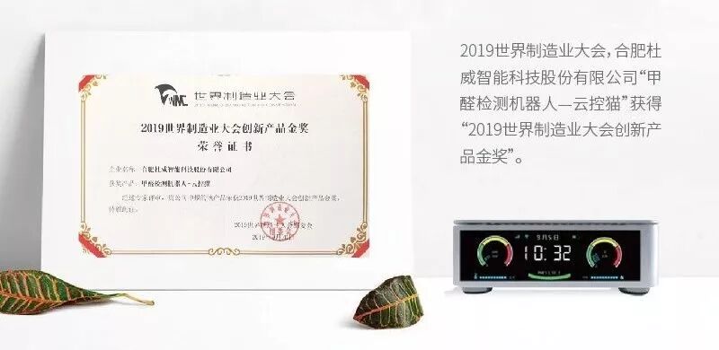 24年,杜威智能以工业设备闻名,而如今,它直接把高科技带到了大众的身边。这个可爱的甲醛检测机器人——云控猫,是2019年世界制造业大会上的“网红”产品,也一举获得制造业大会创新产品——智慧生活类金奖。